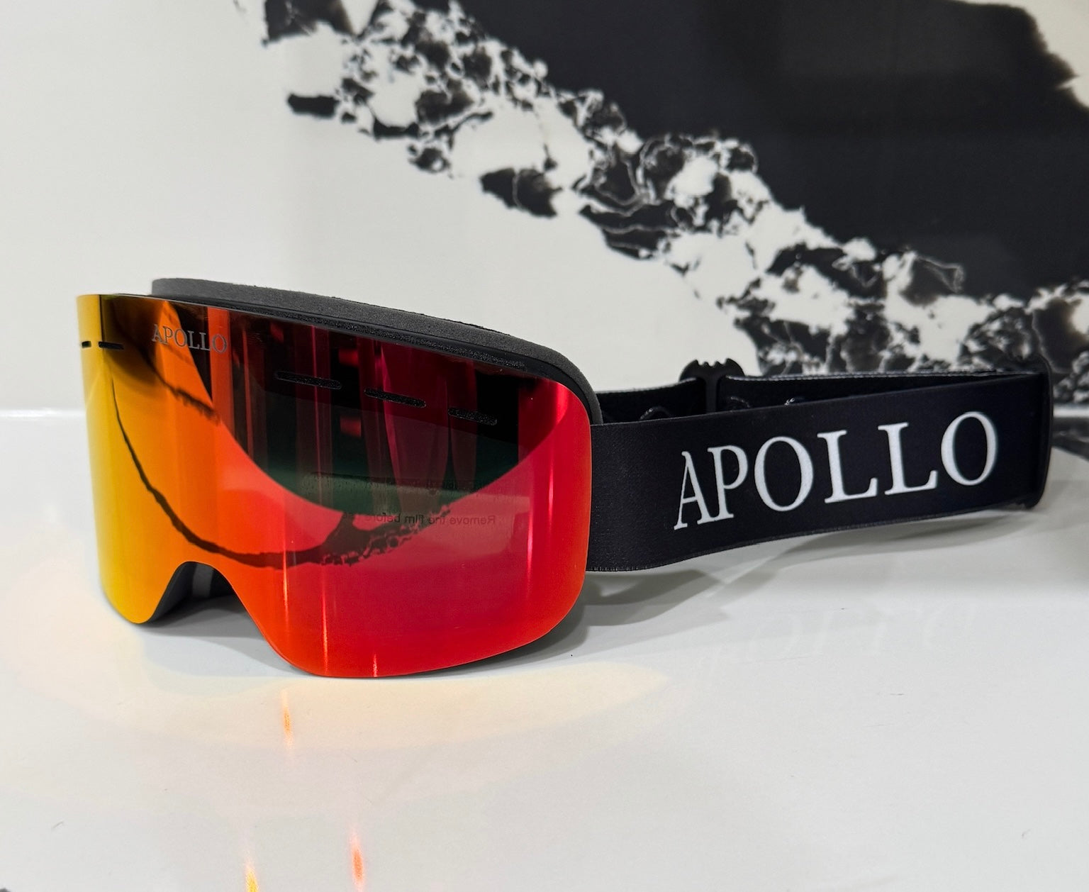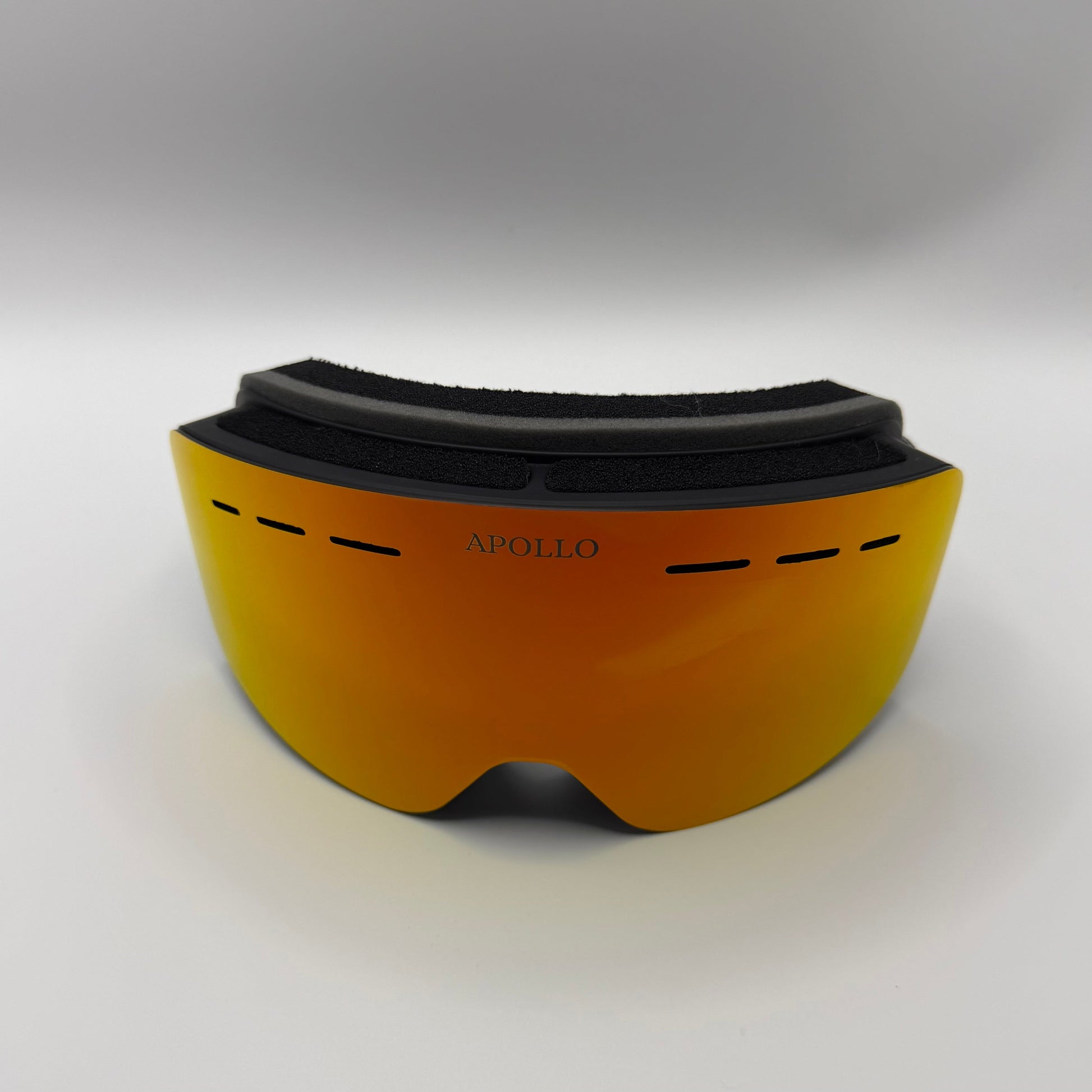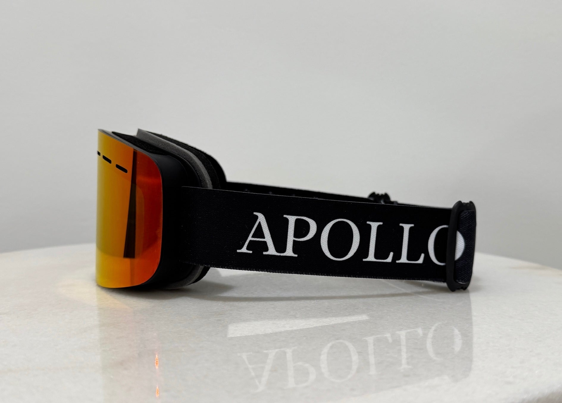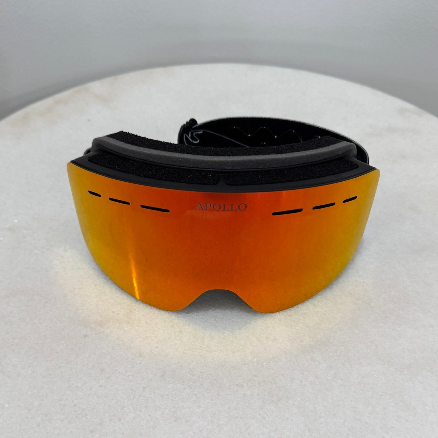 Introducing the Apollo Orange Lens Goggles — engineered for peak performance and standout style. Featuring a frameless, high-reflective orange-red lens with anti-fog tech and six precision vents for ultimate clarity. The sleek matte strap with bold white APOLLO branding ensures a secure fit and head-turning look from park to powder.